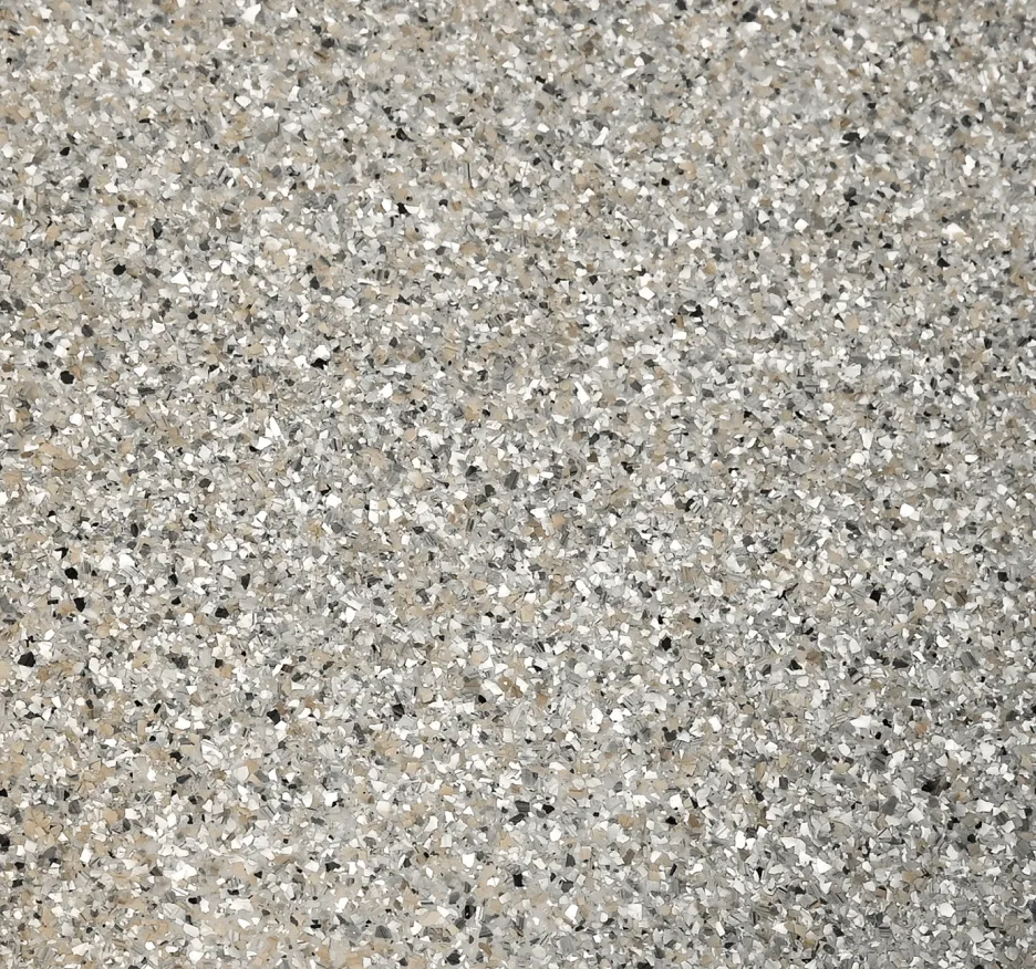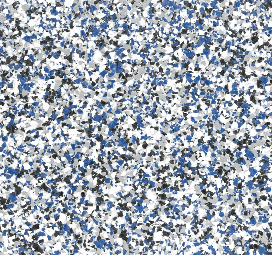 In 2008, we introduced Creative Flake flooring, a two-part epoxy seamless system featuring vibrant acrylic flakes. This flooring offers easy cleaning and maintenance, ensuring a stunning look for years. Customers can select from 30 colors for the base coat, allowing for customized designs.